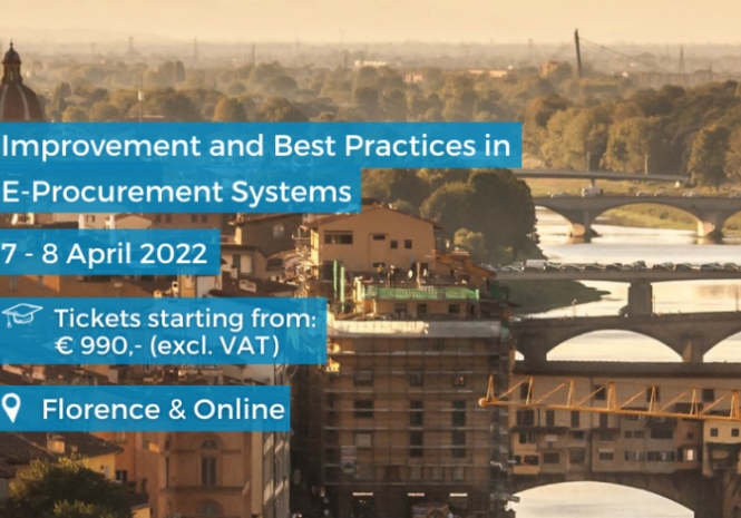 Soustanoviteljica IJZP in S-Procurement izr. prof. dr. Petra Ferk sodeluje na intenzivni delavnici z naslovom "IMPROVEMENT AND BEST PRACTICES IN E-PROCUREMENT SYSTEMS", ki bo potekala 7. in 8. aprila v Firencah ter preko spleta, v organizaciji Lexxion. Namenjena je posameznikom z naprednim znanjem o e-naročanju. Na tej interaktivni delavnici bodo strokovnjaki predstavili številne možnosti e-naročanja, kako izboljšati svoje delo z e-naročanjem ter najboljše prakse na področju e-naročanja.